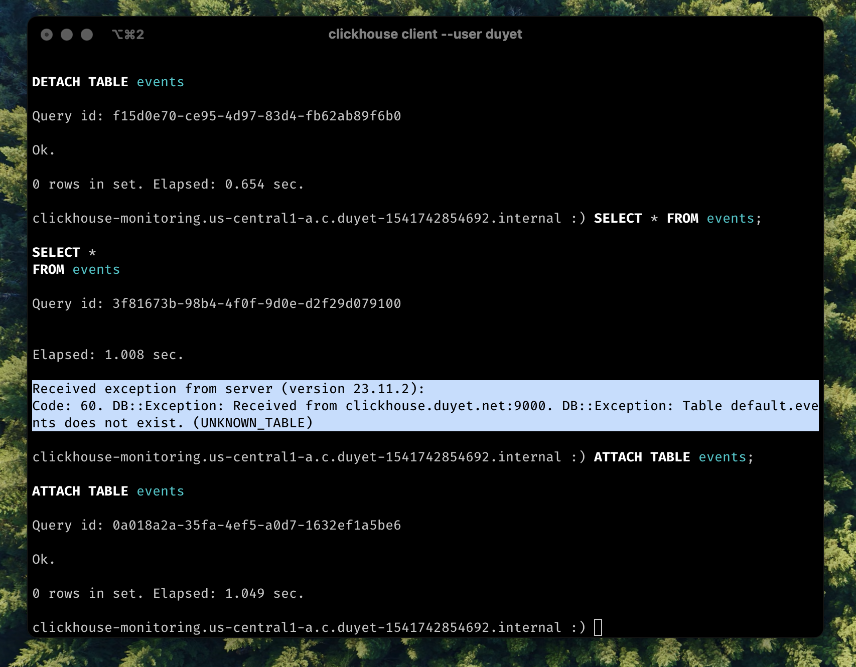 │ events │ 202405 │ 202405_2_2_0 │ 1 │ /var/lib/clickhouse/store/410/410ccafd-c5ac-48b7-93e6-42b6a82f4ece/202405_2_2_0/ │